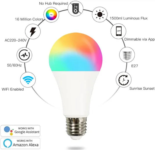Smart WIFI 9W B22 RGB CCT LED Light Bulb | 3000K to 6000K | RGB