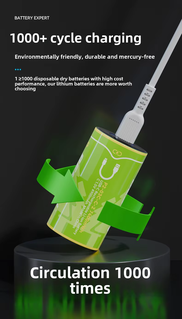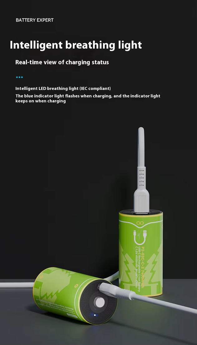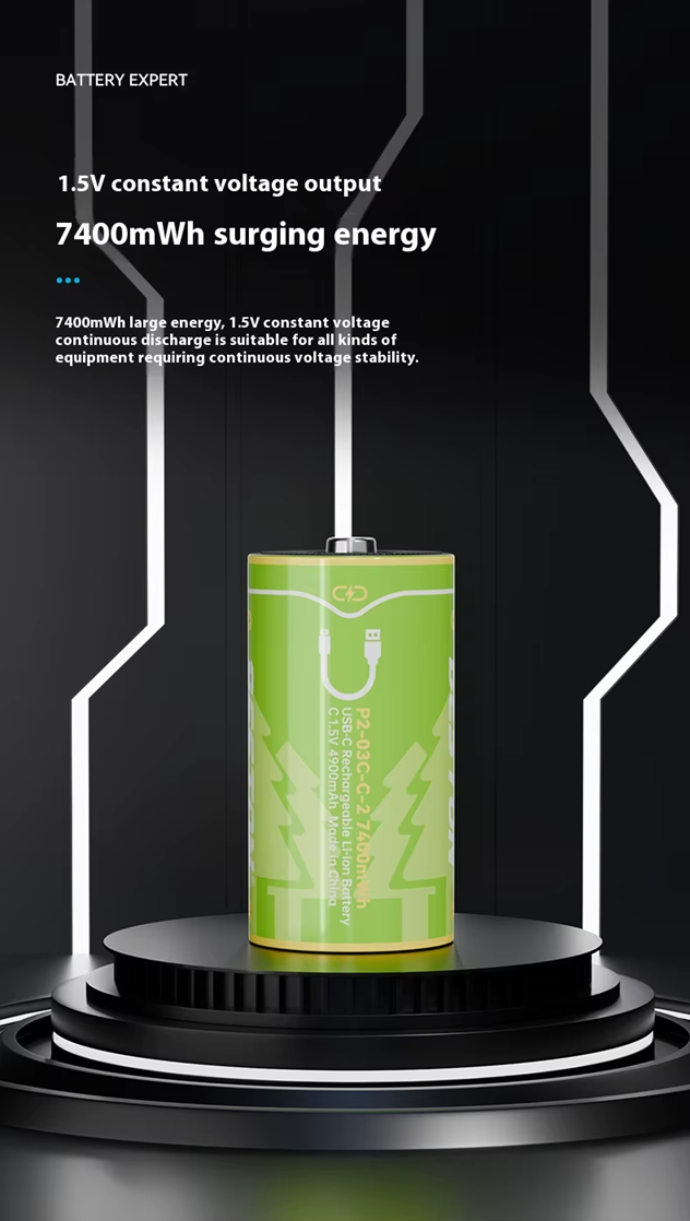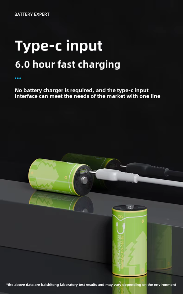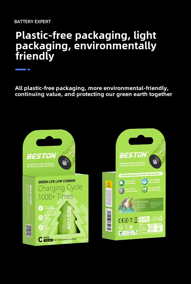 BESTON C Cell USB C Rechargeable Lithium-ion Battery | 1.5V | 4900mAh | 2 Pack