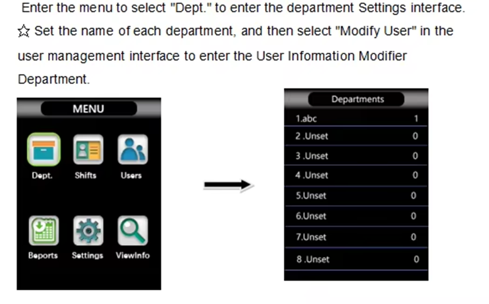 User Manual has all the instructions for setting up the Device and Users.