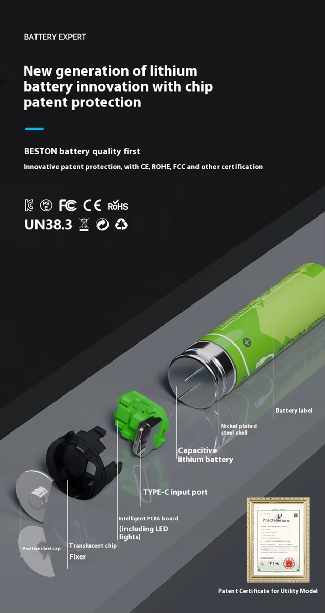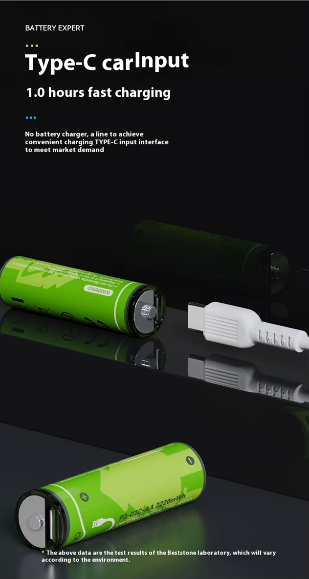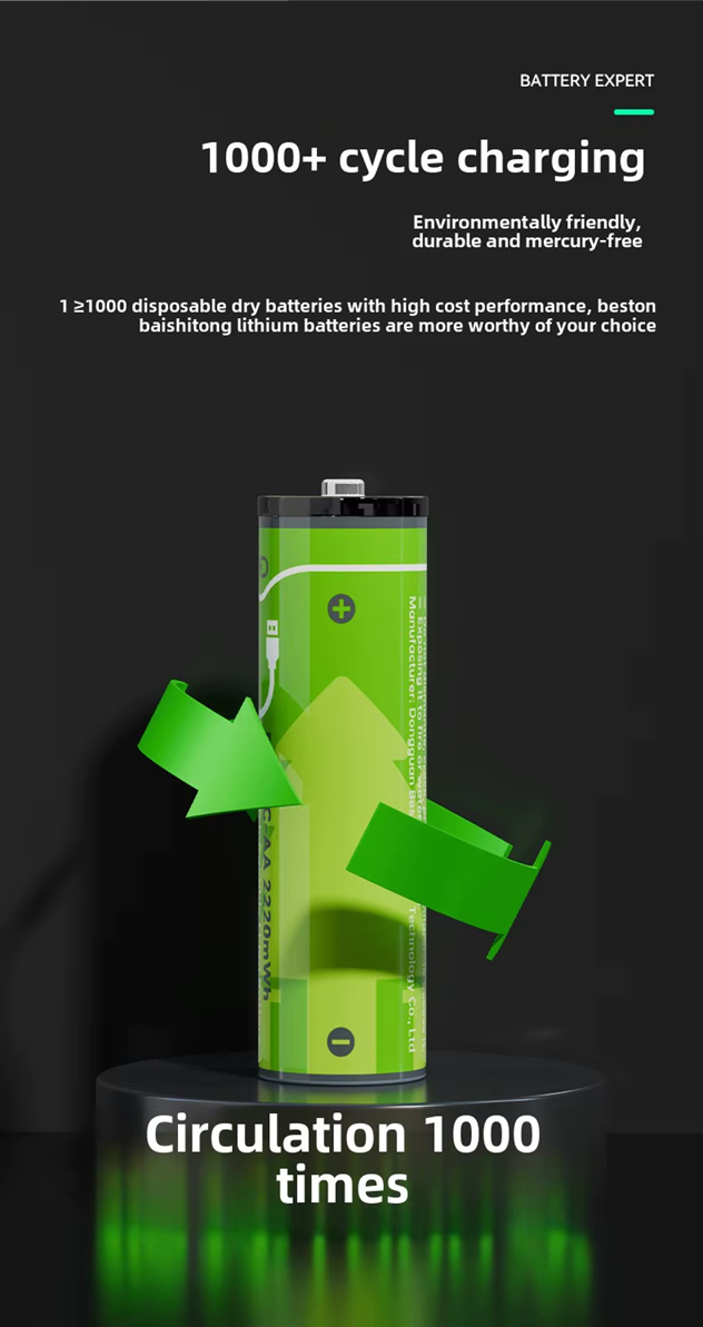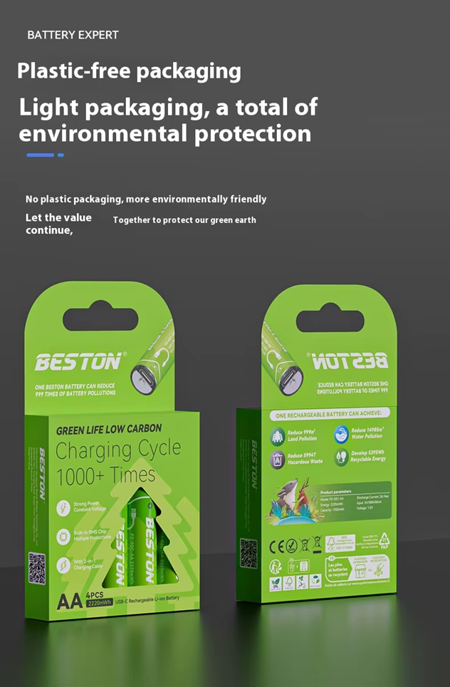 BESTON AA USB C Rechargeable Lithium-ion Battery | 14500 | 1.5V | 2000mAh | 4 Pack